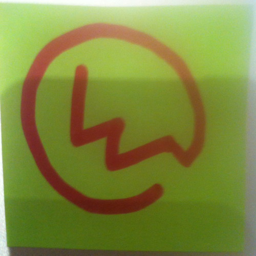 I get an email a few minutes later at 1:10am with image of his sketch and a short note from him "Looks like an @ symbol, but with a W, slightly tilted to vaguely resemble the filament of a light bulb".