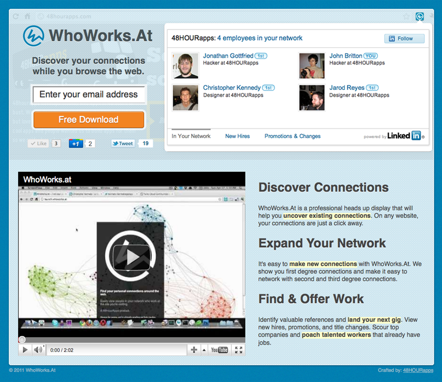 WhoWorks.At is a Chrome extension that let's you discover your connections while you browse the web.