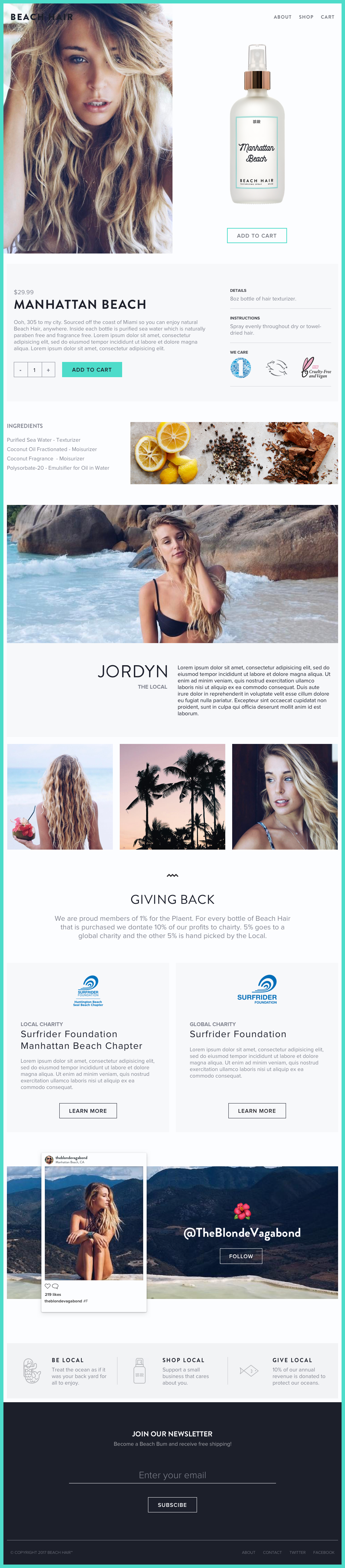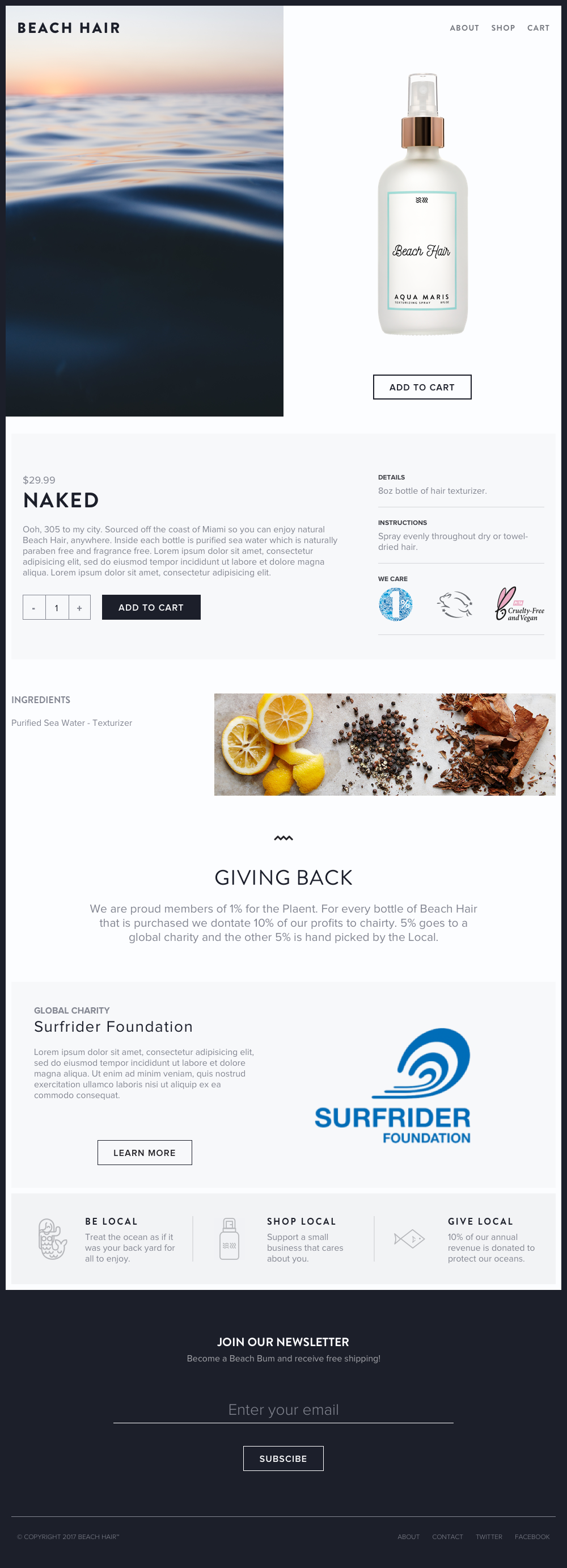 Beach Hair is all natural texturizing spray from the finest oceans around the world. This project is currently on hold.
