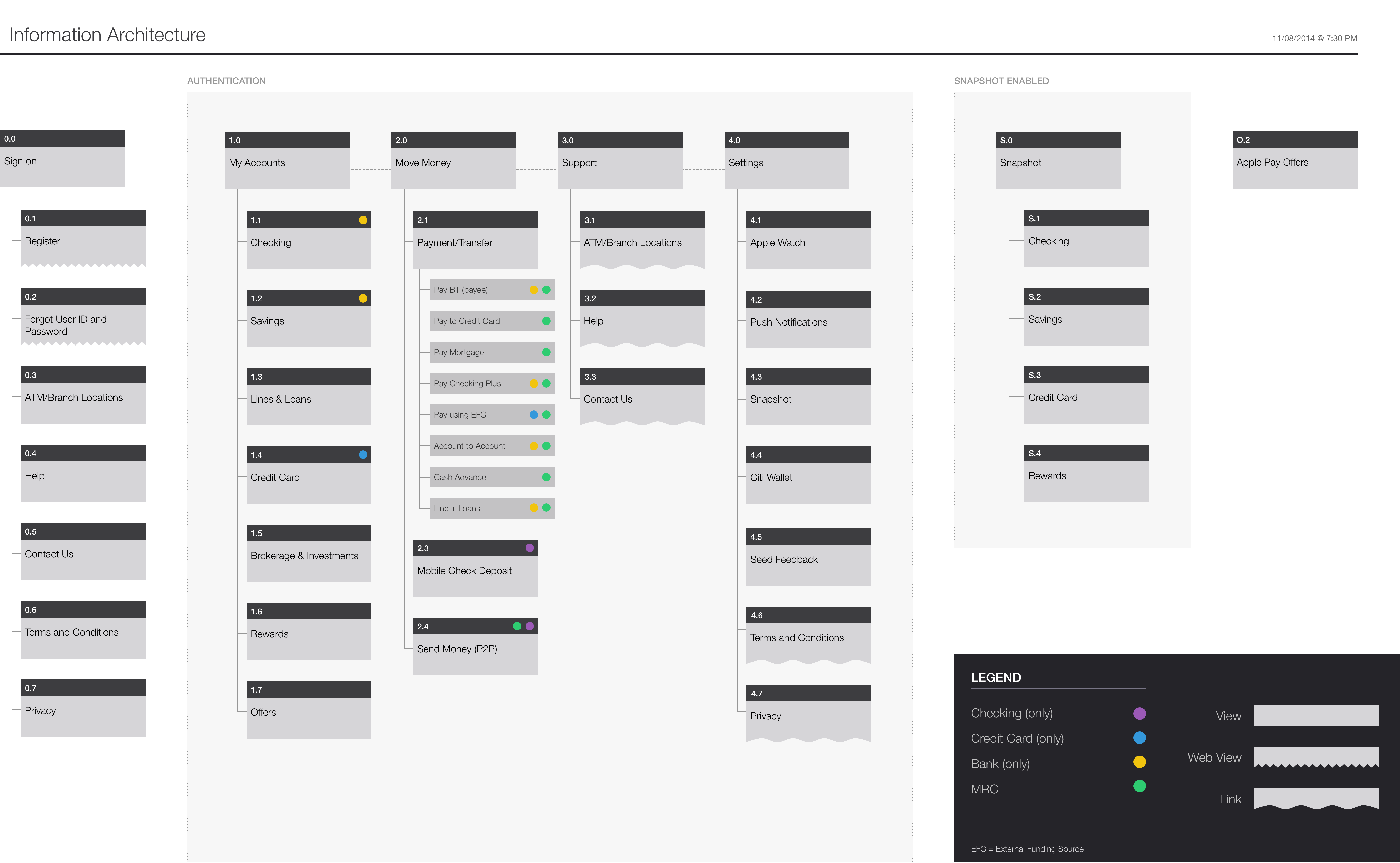 I had the honor to help lead the Citi Bank iPhone app redesign and help with the creation of their first Apple Watch app. I have a lot more work to show, but here are some hightlights.