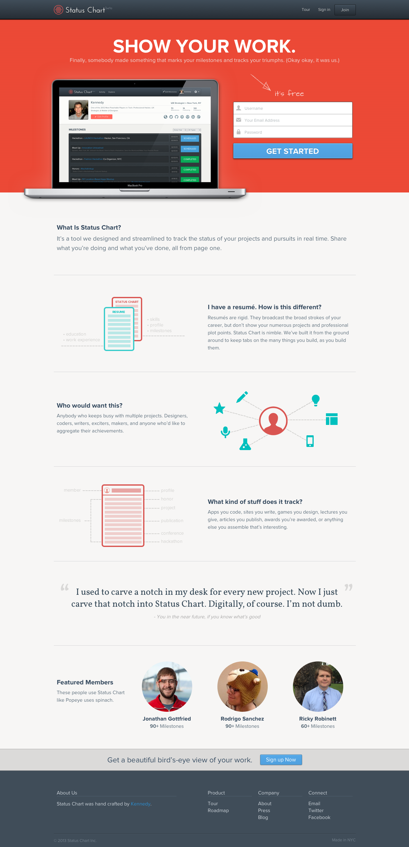 Status Chart is your professional dashboard. The simplest way track and share your professional milestones and all of the important things that make you who you are.