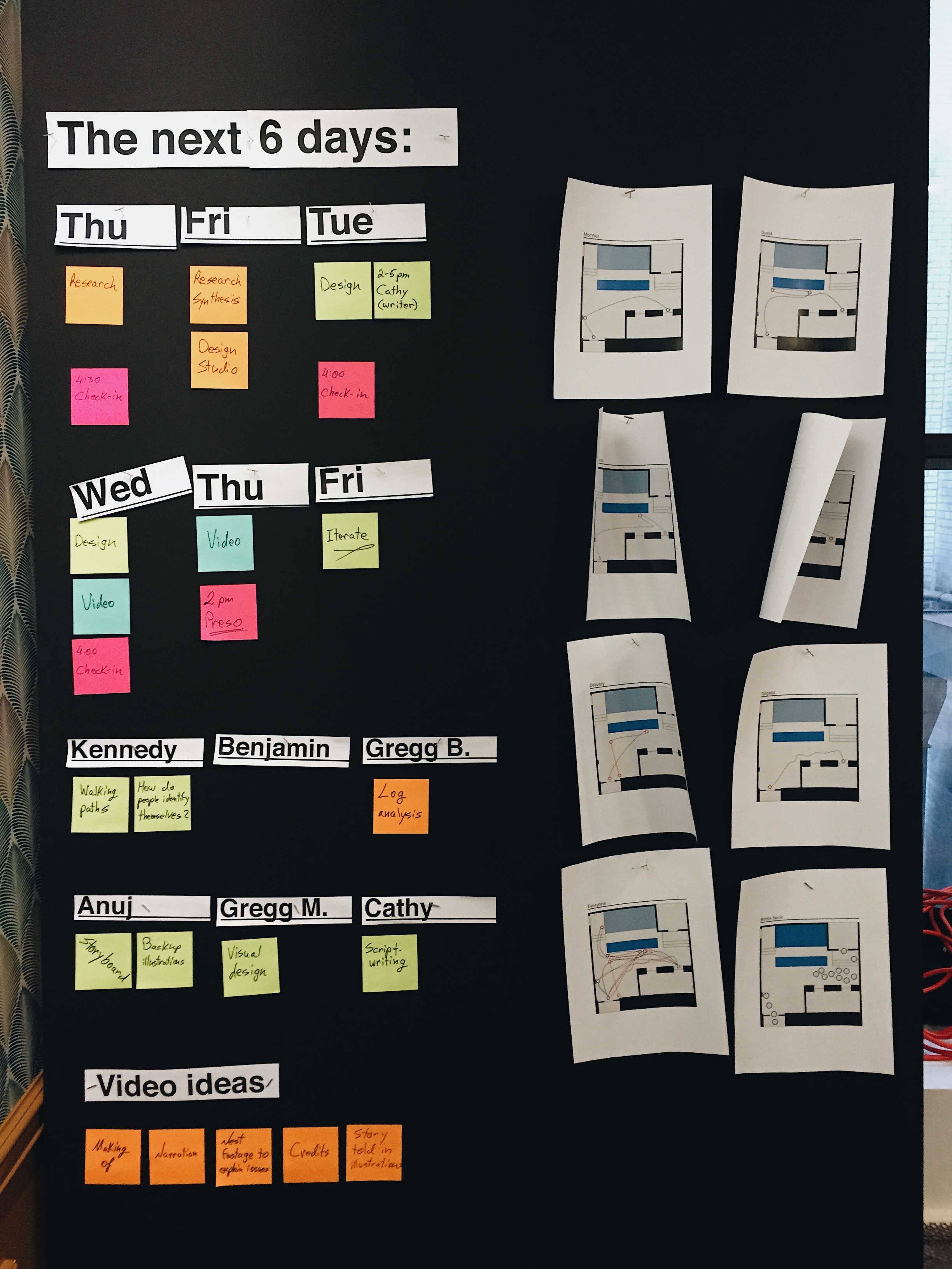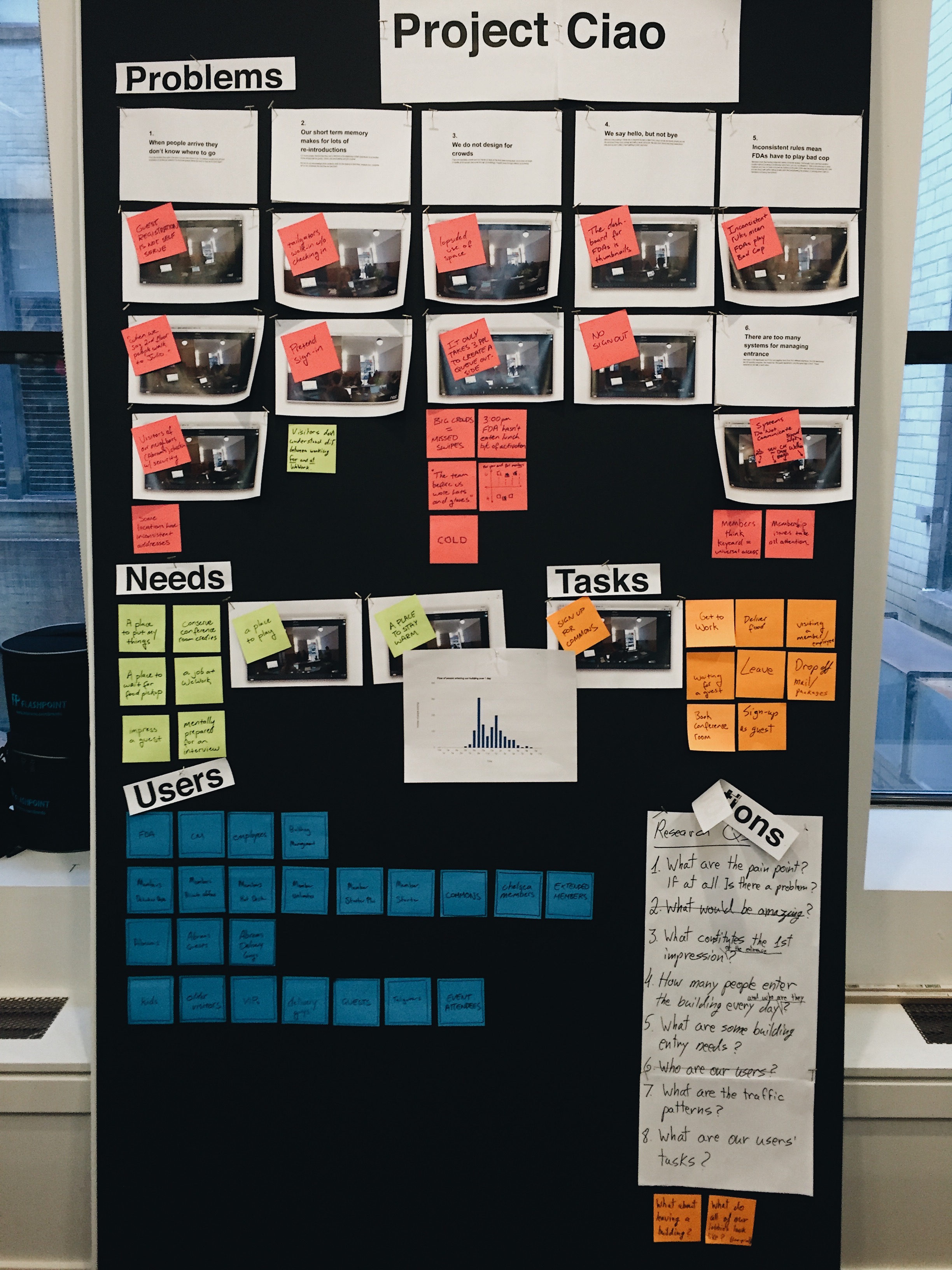 The first thing we had to do was understand the problems. We started off by setting up a camera and recorded everyone that walked through the lobby for 72 hours straight, and we set up a temp workstation for some observational research.