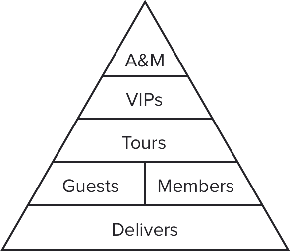 We designed an iPad app prototype that welcomed visitors as they came through the lobby. We created this around, what we called, the Lobby Pyramid.
