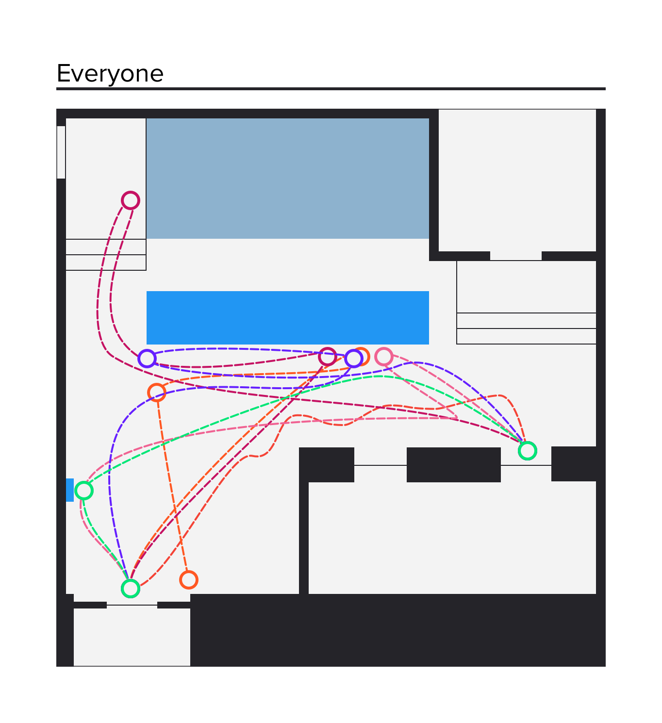 We tracked and identified everyone that entered through the lobby. Once we had that information, we were able to map out optimal paths for individuals and see what issues they faced upon entering the building.